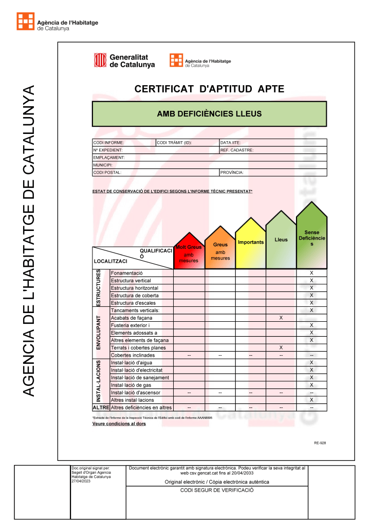 El informe de la ITE es el documento que describe las características generales del edificio, donde se debe hacer constar su estado de conservación, y las posibles deficiencias aparentes constructivas o funcionales que pueden afectar a los elementos comunes que se indican en el modelo normalizado de informe, aunque se tenga que acceder por zonas de uso privativo, y su calificación.